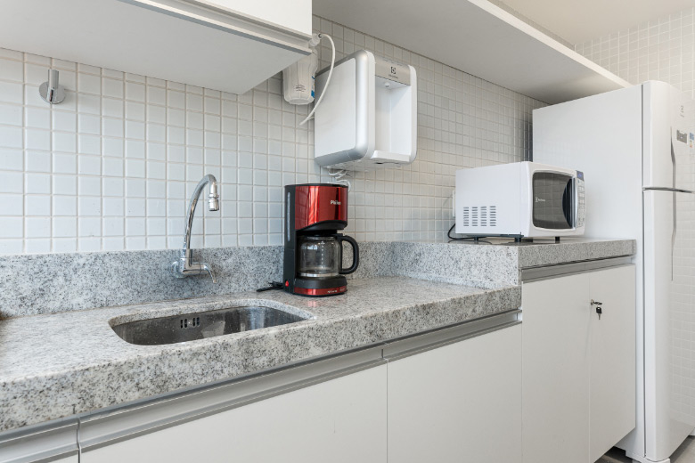 A Sala de Reunião do Torre 48 conta com TV, sistema de video conferência, café e água e com cadeiras para atender reuniões com até 9 participantes.