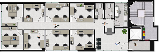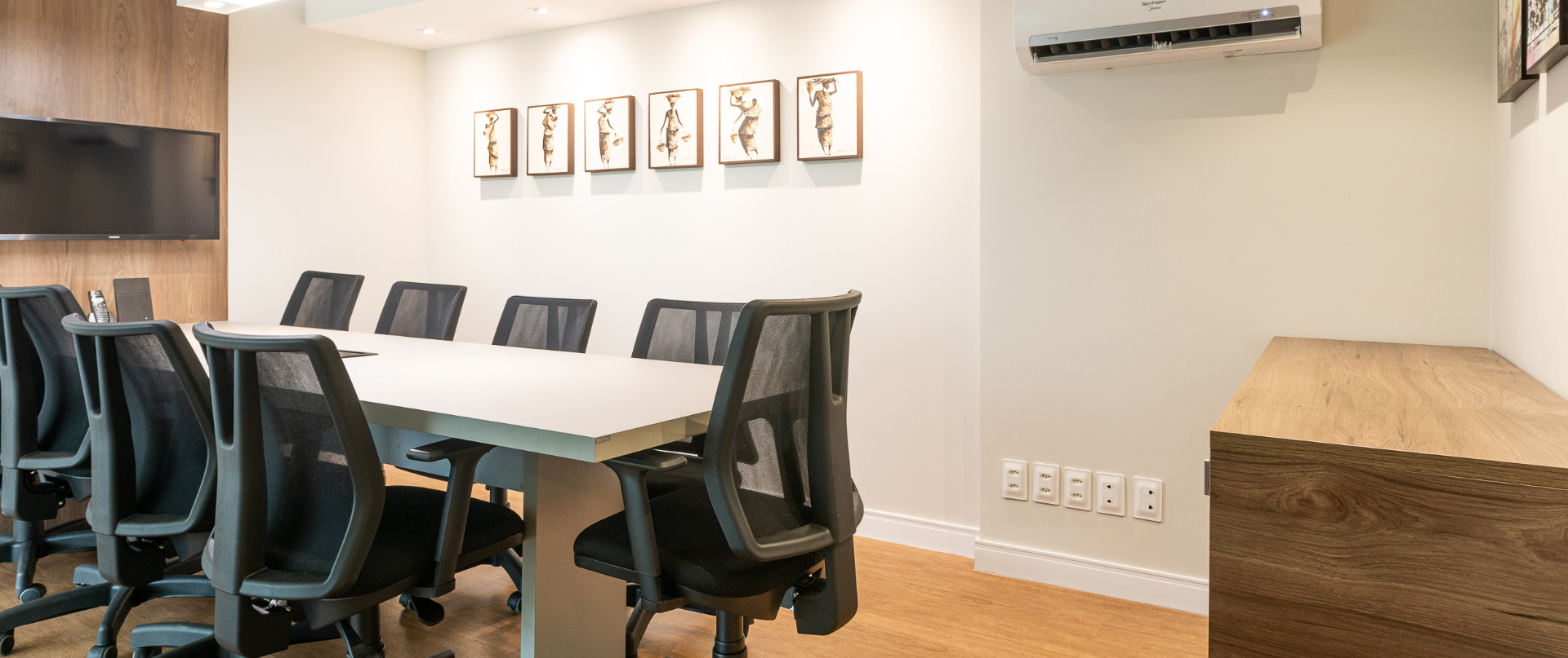 Nossas salas são equipadas com ar-condicionado, móveis e cadeiras de alto padrão. Ideal para empresas de pequeno e médio porte e para profissionais autônomos que buscam um local com estrutura, conforto e praticidade. As Salas podem ser contratadas de acordo com a quantidade de pessoas que seu negócio necessita.